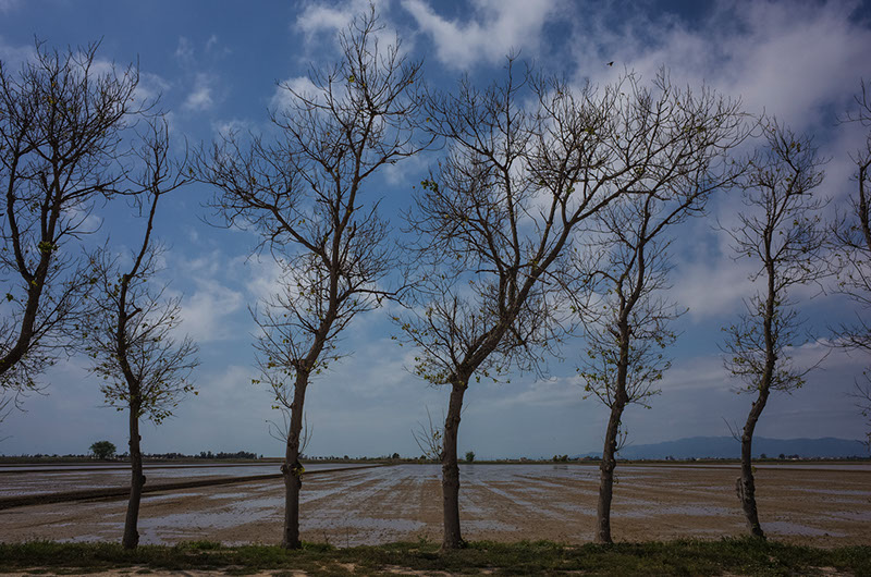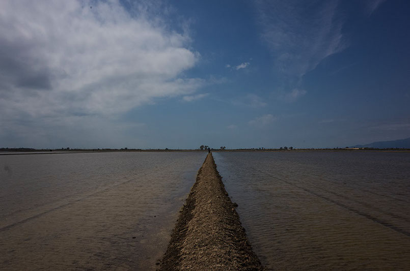Cuando el río llega a su fin, antes de fundirse con el mar mediterráneo, la tierra adopta forma triangular abrazada por los márgenes externos del fértil delta. El agua, el cielo y la tierra se funden creando el paisaje.
